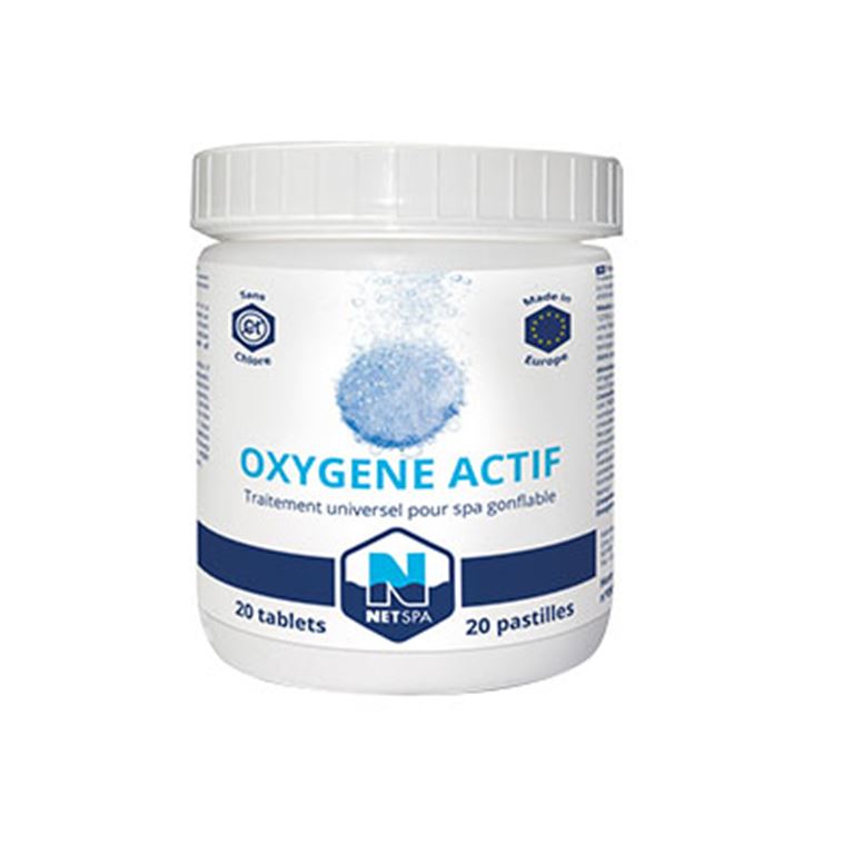 Μοναδικo, all-in-one δεν είναι διαθέσιμο πουθενά αλλού! Το ενεργό οξυγόνο NetSpa είναι ένα ισχυρό απολυμαντικό που σας επιτρέπει να απομακρύνετε βακτήρια και άλλους μικροοργανισμούς από το νερό του υδρομασάζ σας. 1 δισκίο μια φορά την εβδομάδα Κουτί των 20 δισκίων με εγγυημένη προστασία των τοιχωμάτων του SPA Χωρίς χλωρίωση Κατασκευασμένο στην Ευρώπη σύμφωνα με τα υψηλότερα πρότυπα ποιότητας Πακέτο περιλαμβάνει: 1 κουτί με 20 ταμπλέτες των 20 g
