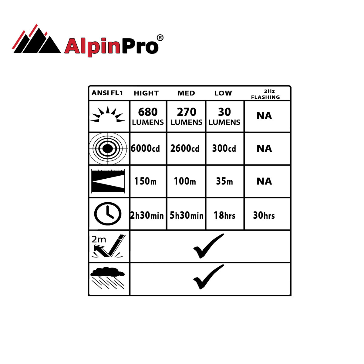 Φακός Κεφαλής AlpinPro HL-01HR Hybrid IR