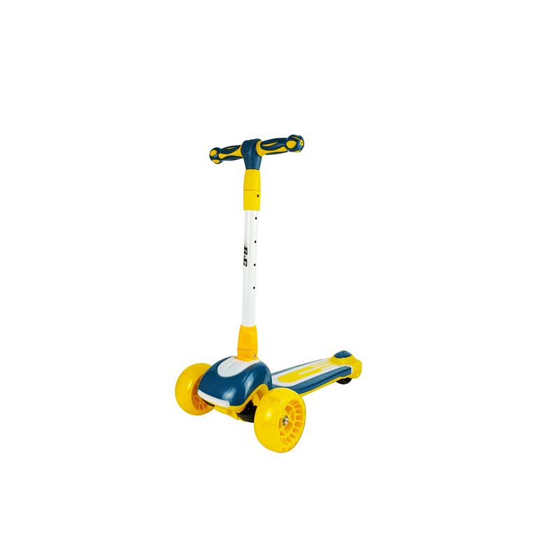 SCOOTER S218 Μπλε/Κίτρινο της Gamp;C είναι ένα τρίκυκλο σκούτερ που προορίζεται για τα παιδιά. Το πατίνι διαθέτει μια σταθερή πλατφόρμα, δυο μπροστινούς φαρδεις τροχούς και έναν φαρδύ τροχό πίσω όπως και το φρένο. Ο συνδιασμός αυτός εξασφαλίζει την σταθερότητα και την ασφάλεια κατά την οδήγηση. Επιπλέον, διαθέτουν ενσωματωμένα φώτα LED στους τροχούς για καλύτερη προβολή του παιδιού κατά τη διάρκεια της βόλτας. Ενα επιπλέον πλεονέκτημα του συγκεκριμένου σκούτερ είναι φώτα LED και στην πλατφόρμα που θα χαρίσουν ώρες χαράς και διασκέδασης στο παιδί σας. ΤΕΧΝΙΚΑ ΧΑΡΑΚΤΗΡΙΣΤΙΚΑ ΥΛΙΚΟ: Deck: PP, TPR Steering wheel stem: aluminium Handlebar: TPE LED ΦΩΤΑΚΙΑ ΣΤΟΥΣ ΤΡΟΧΟΥΣ ΚΑΙ ΣΤΗΝ ΠΛΑΤΦΟΡΜΑ Αντιολισθητική Πλατφόρμα Φρένο Ποδιού ΤΡΟΧΟΙ: Εμπρόσθιος: PU130*55mm Οπίσθιος: PVC85*45mm Steering wheel: Grips: TPR, thermoplastic rubber Φρένο ποδιού Steering wheel adjustment range (measured from the deck): Ελάχιστο Υψος Τιμονιού: 72 cm Μέγιστο Υψος Τιμονιού : 88 cm Διαστάσεις Πλατφόρμας: Μήκος: 64cm Πλάτος: 14 cm Μέγιστο επιτρεπόμενο φορτίο: Στο πατίνι: 50kg Βάρος προιοντος: 3.3kg